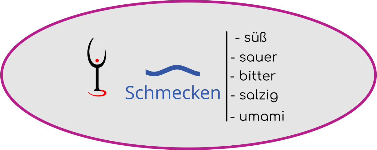 Schmeckarten (ersetzt den Begriff Geschmacksrichtung): Süß, Sauer, Bitter, Salzig, Fett und Umami.